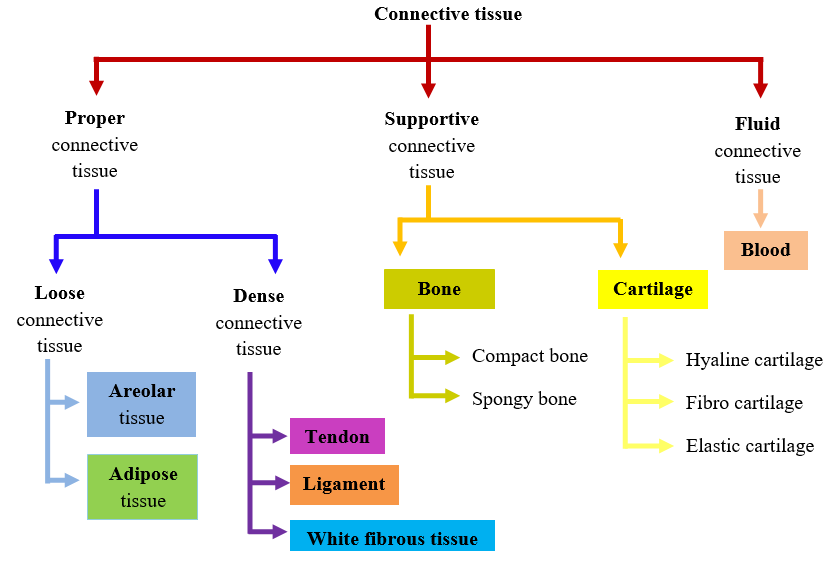 Connective tissue is the most abundant tissue found in an animal body. They have large amount of extracellular materials called the matrix. The cells are widely separated. They are termed connective tissue because their main function is to link and support all other tissues in the body.